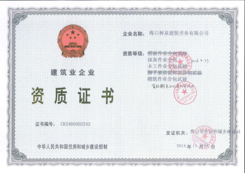 ??跇淙ㄖ趧沼邢薰境闪⒂?011年,公司位于海口,其前身是一家專業建筑施工隊,自2004年即開始在海南從事建筑勞務施工。自成立至今,公司已經擁有一支科學管理、質量過硬、能打硬仗,搶工期的專業隊伍。能獨立承擔大中型工業與民用建筑 、室內外裝修、各類機電設備安裝工程。代表工程有??跒I海華庭、三亞時代海岸T01/02/04/05棟高層、合肥東海花園二期、陵水富力灣B區高層、三亞金中海(酒店)、瓊海大印經典花園、??诃h球海景大酒店(四星級酒店,在建中)、陵水珍珠大廈(五星酒店)、??谌f達廣場、美蘭機場二期。